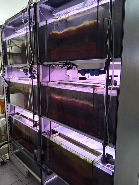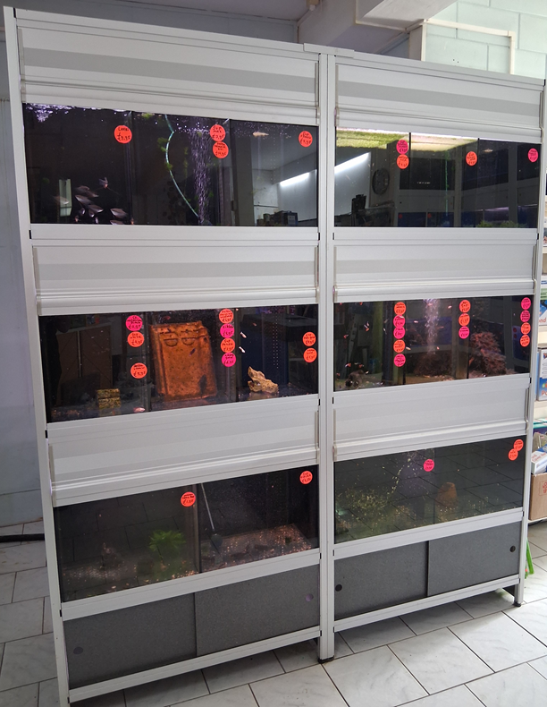 Aquarium stelling met 6 aquariums en schotten, 16 ruimtes!!!
